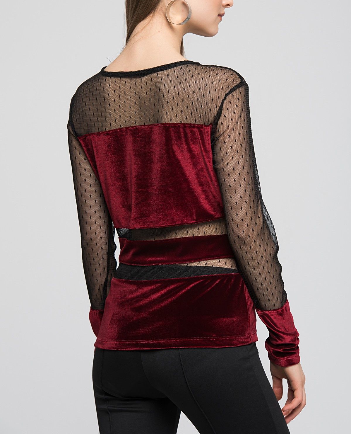Bordo Tül Detaylı Kadife Bluz Bluz Blz31074 | SENSE ®