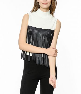 Ekru Uzun Deri Sacakli Ribana Bluz Blz14371 | SENSE ®
