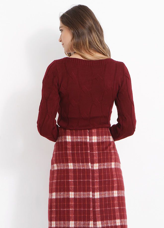 Bordo Genis Sac Örgülu Kazak Trk18193 | SENSE ®