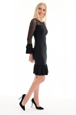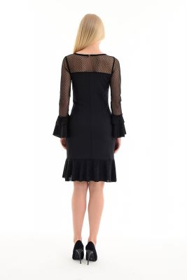 Siyah Deri Ve Tül Detaylı Elbise | Elb13004