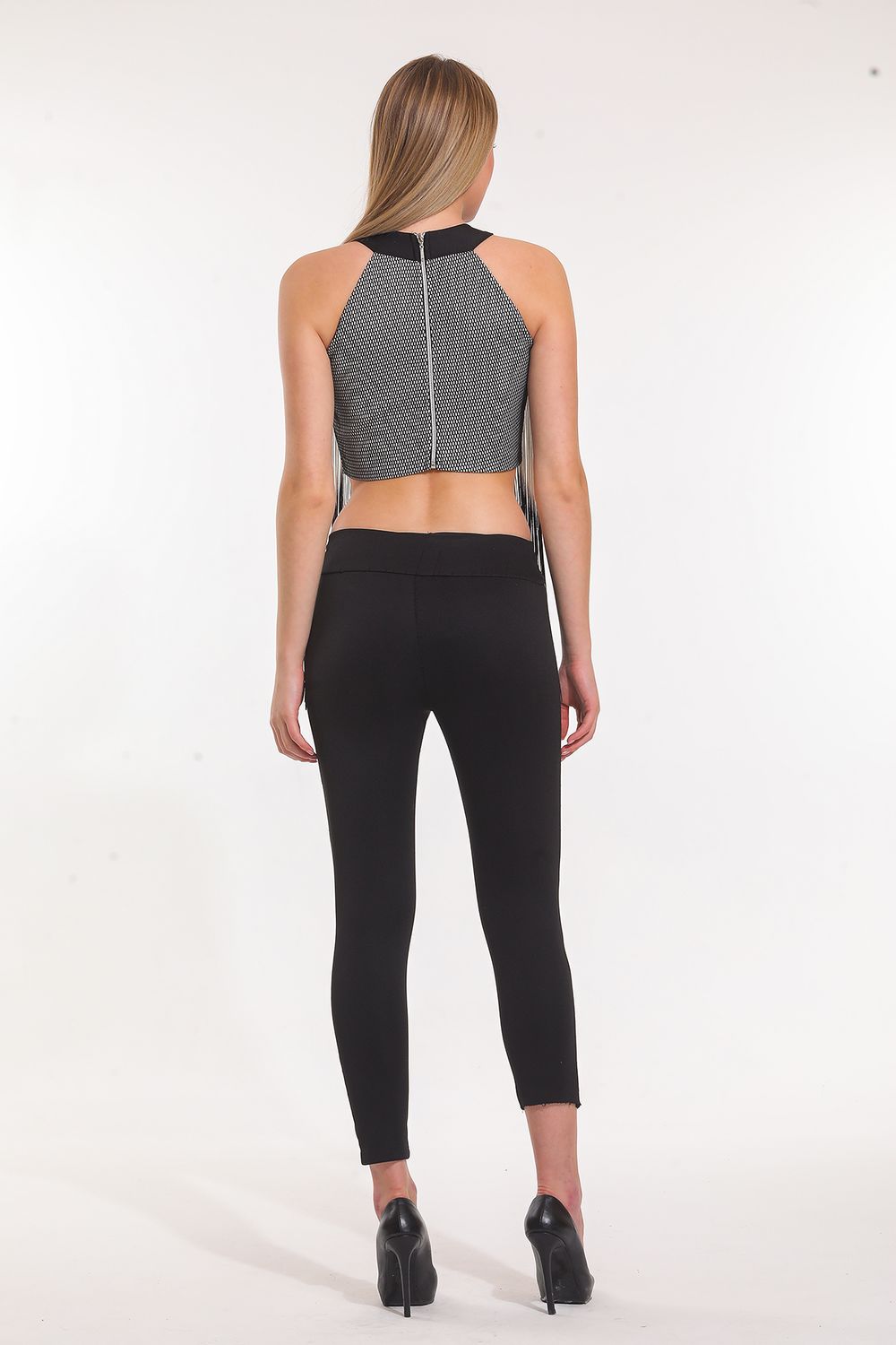 Siyah Pantolon - Önü Deri Furmuarlı Pantolon | Pnt31128