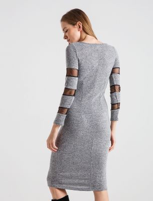 Grı Muline Havuz Yaka Uzun Kollu Kolları Tül Garnili Elbise | Elb31081