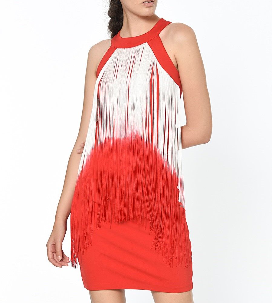 Kırmızı Sırtı Fermuarlı Kolsuz Renkli Sacaklı Dalgic Elbise | Elb13998