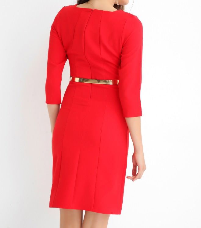 Kırmızı Fermuarlı Krep Elbise Elb14170 | SENSE ®