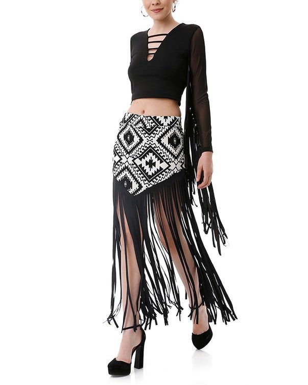 Siyah Kilim Desen Püsküllü Kilim Desen Etek Etk14220 | SENSE ®