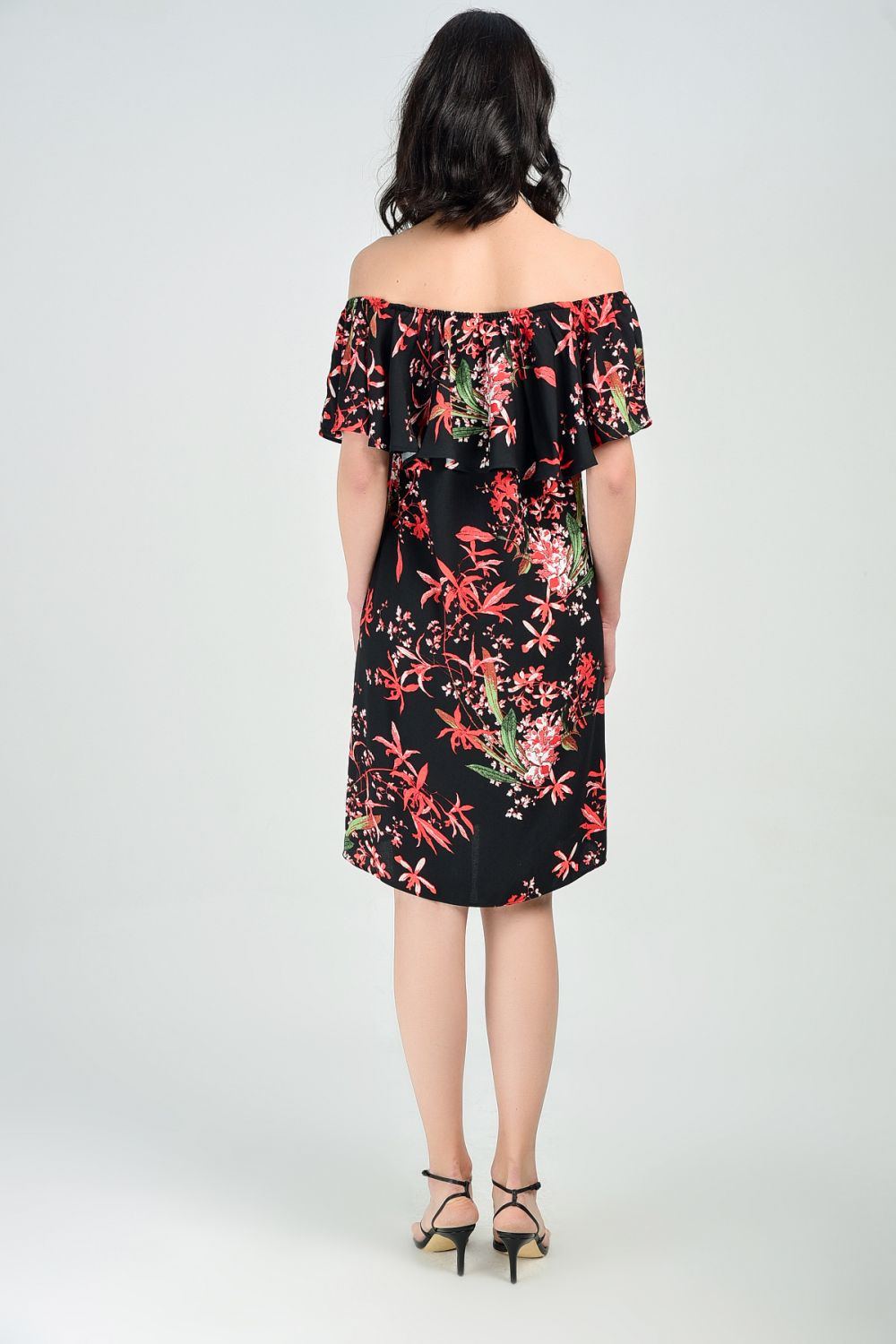 Çicekli Elbise - Siyah Kiremit Yakası Volanlı Elbise | Elb31521