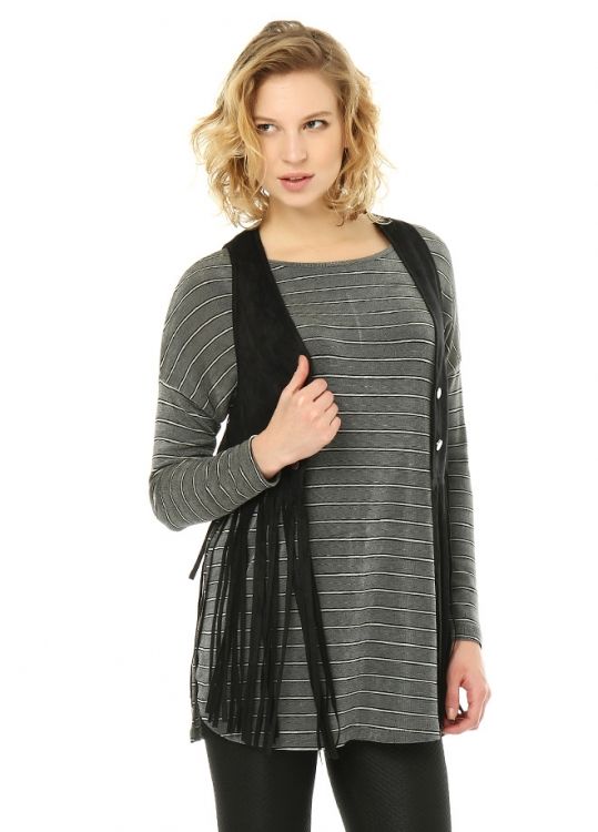 Siyah Püsküllü Süet Yelek Ylk12996 | SENSE ®