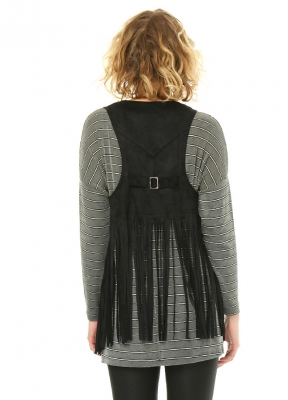 Siyah Püsküllü Süet Yelek | Ylk12996