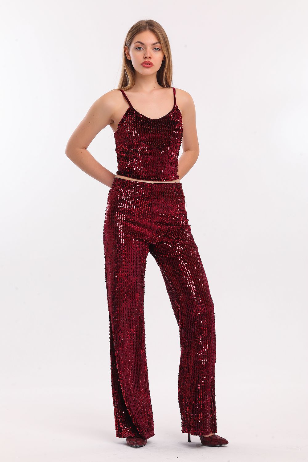 Bordo Sırtı Fermuarlı Askılı Kadife Payet Bustiyer Bus32498 | SENSE