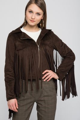 Kahve Püsküllü Fermuarlı Suet Ceket | Ckt13094