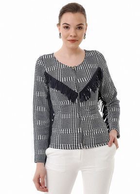 Siyah Kilim Desen Uzun Kollu Balikci Yaka Puskul Garnili Ceket | Ckt14265