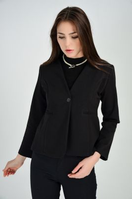 Siyah Kısa Ceket Tek Düğmeli Polo | Ckt33047