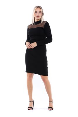 Siyah Sacak Detaylı Dalgıç Elbise | Elb31253