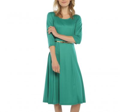 Yesıl Uzun Kol Belden Eklli Yaka Biye Elbise | Elb31495