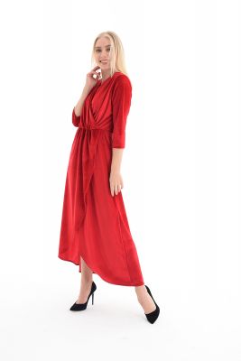 Sense Bordo Ön Kruvaze U.Kol Kadife Elbise | Elb32410