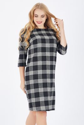Sense Siyah Zigzak Desen Kare Yaka Fermuarlı Elbise | Elb31535