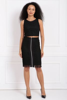 Sense Siyah İçi Astarlı Önü Silver Kombi Fermuarlı Güpür Etek