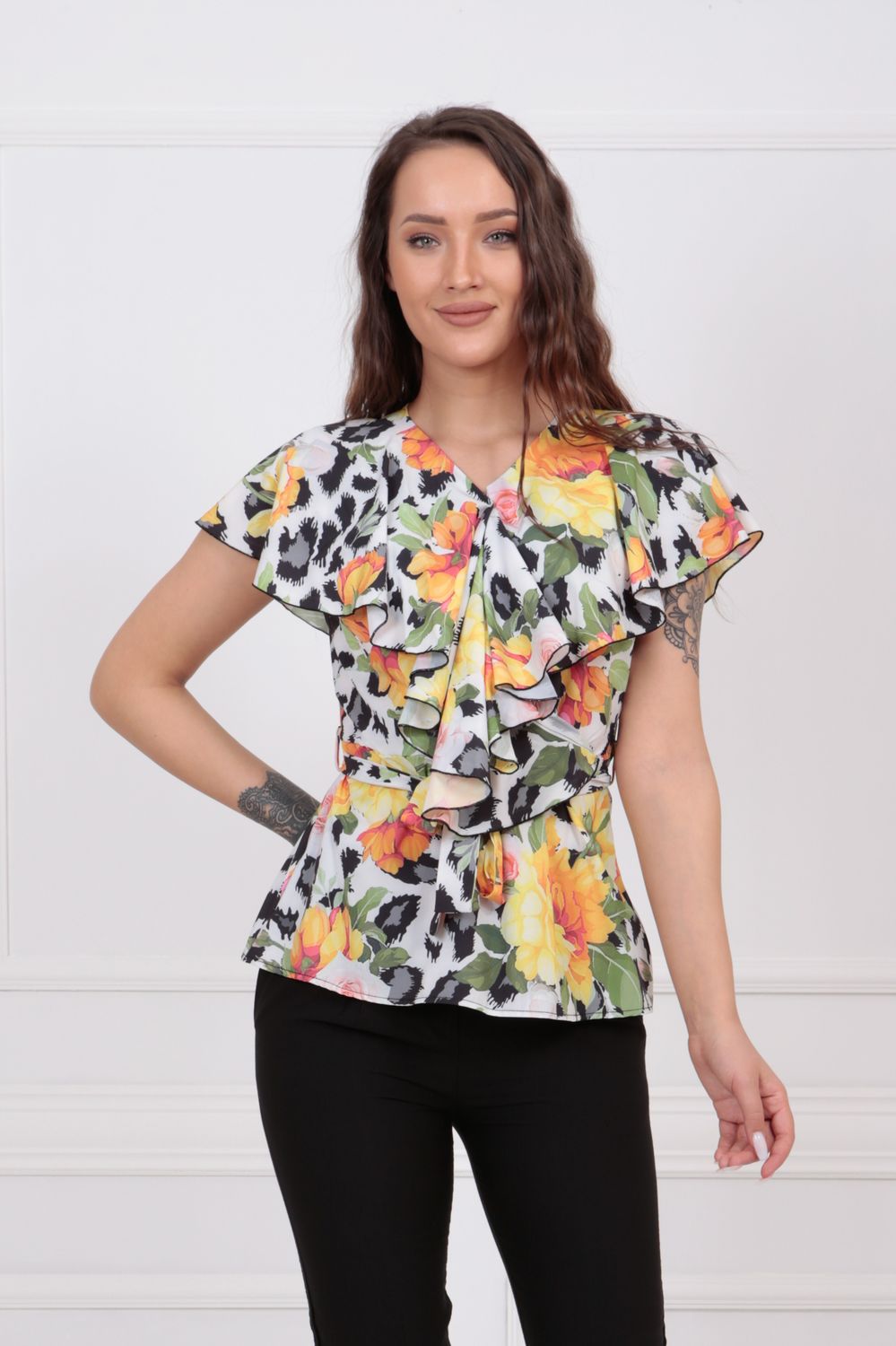 Sense Leopar Volanlı Kruvaze Desenli Bluz Blz32057