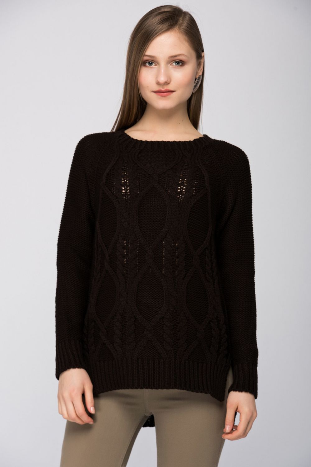 Kahve Sac Örgülü Kazak Trk18347 | SENSE ®