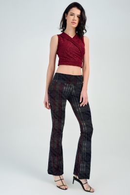 Sense Bordo Kadife İspanyol Paça Pantolon | PNT32405