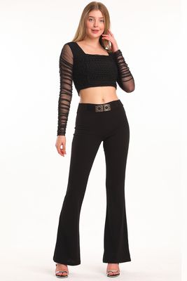 Sense Siyah Metal Toka Detaylı Scuba Krep İspanyol Paça Pantolon