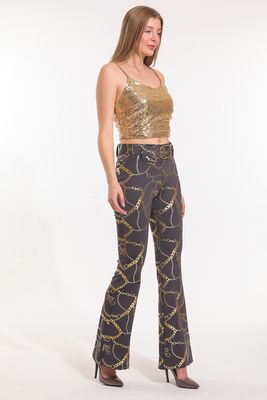 Sense Zincir İspanyol paça Varak Baskılı Scuba Pantolon