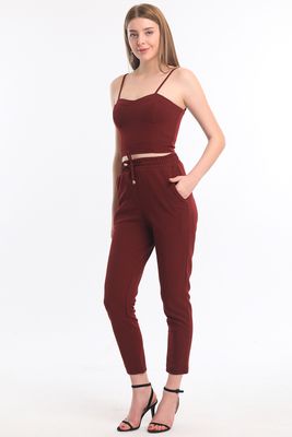 Sense Bordo Beli Lastikli Cepli Bağuclu Scuba Krep Pantolon