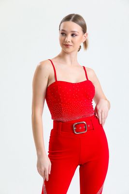 Sense Kırmızı Taş Detaylı Scuba Krep Abiye Büstiyer Bus33438Ts