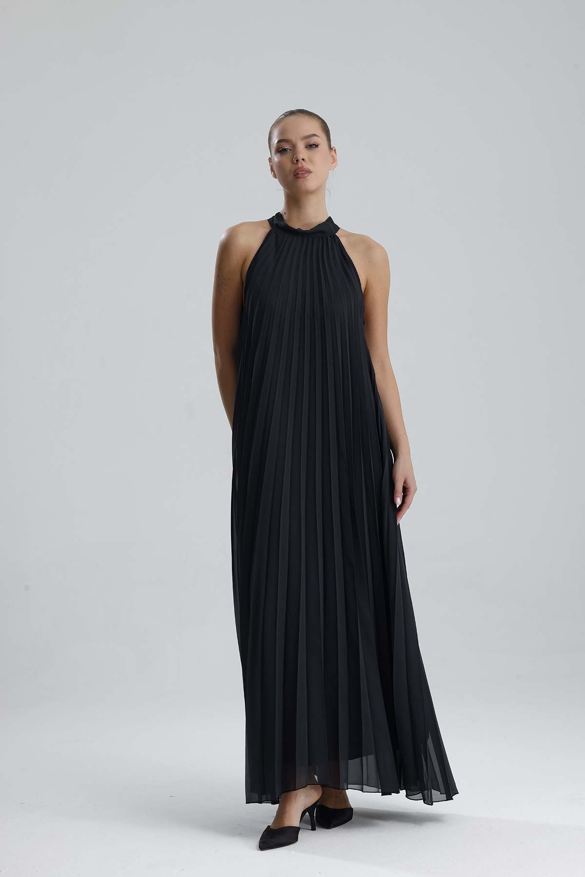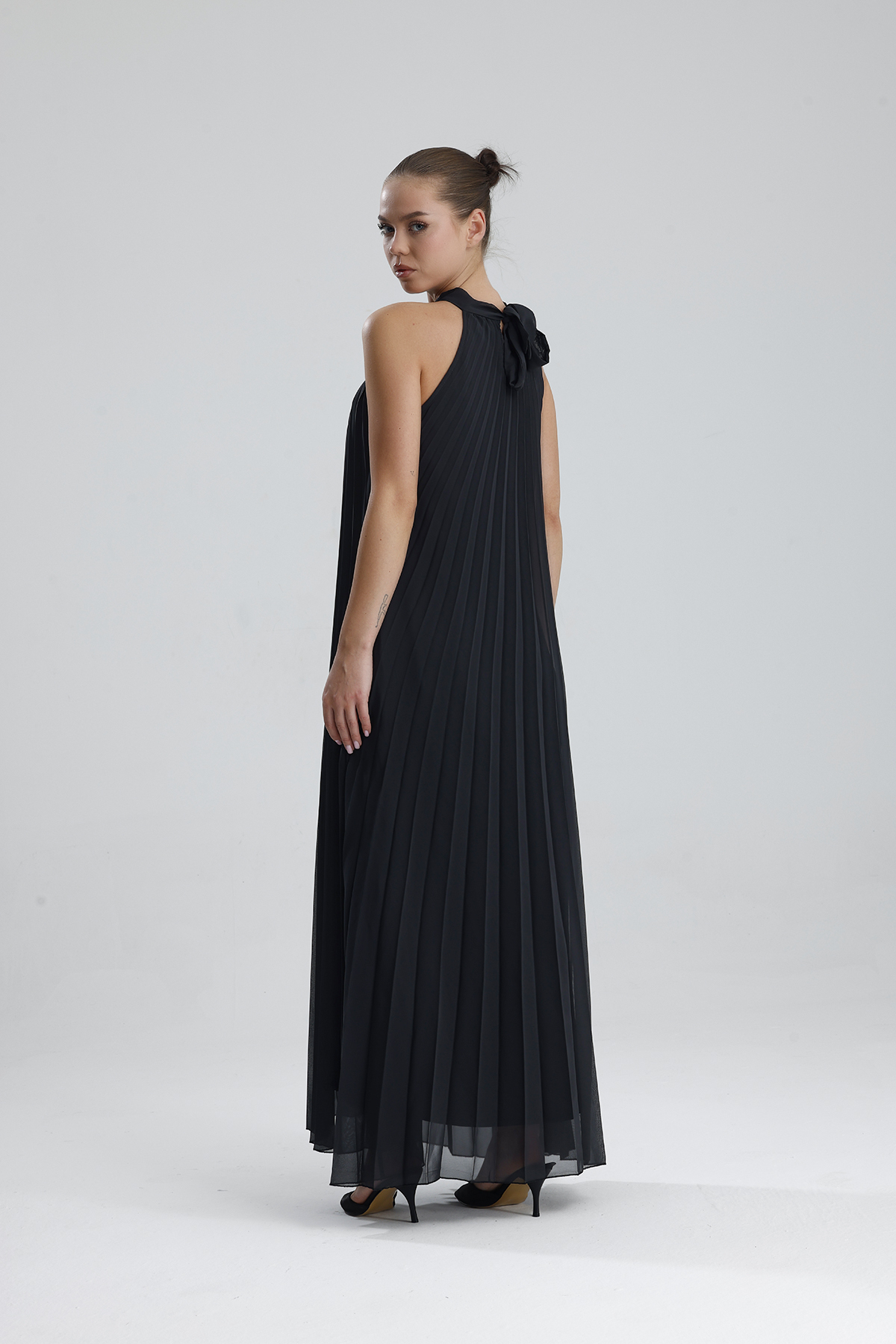 Ürün Detay : Astarlı Piliseli Uzun Abiye Desenli Şifon Elbise | ELB35127SF