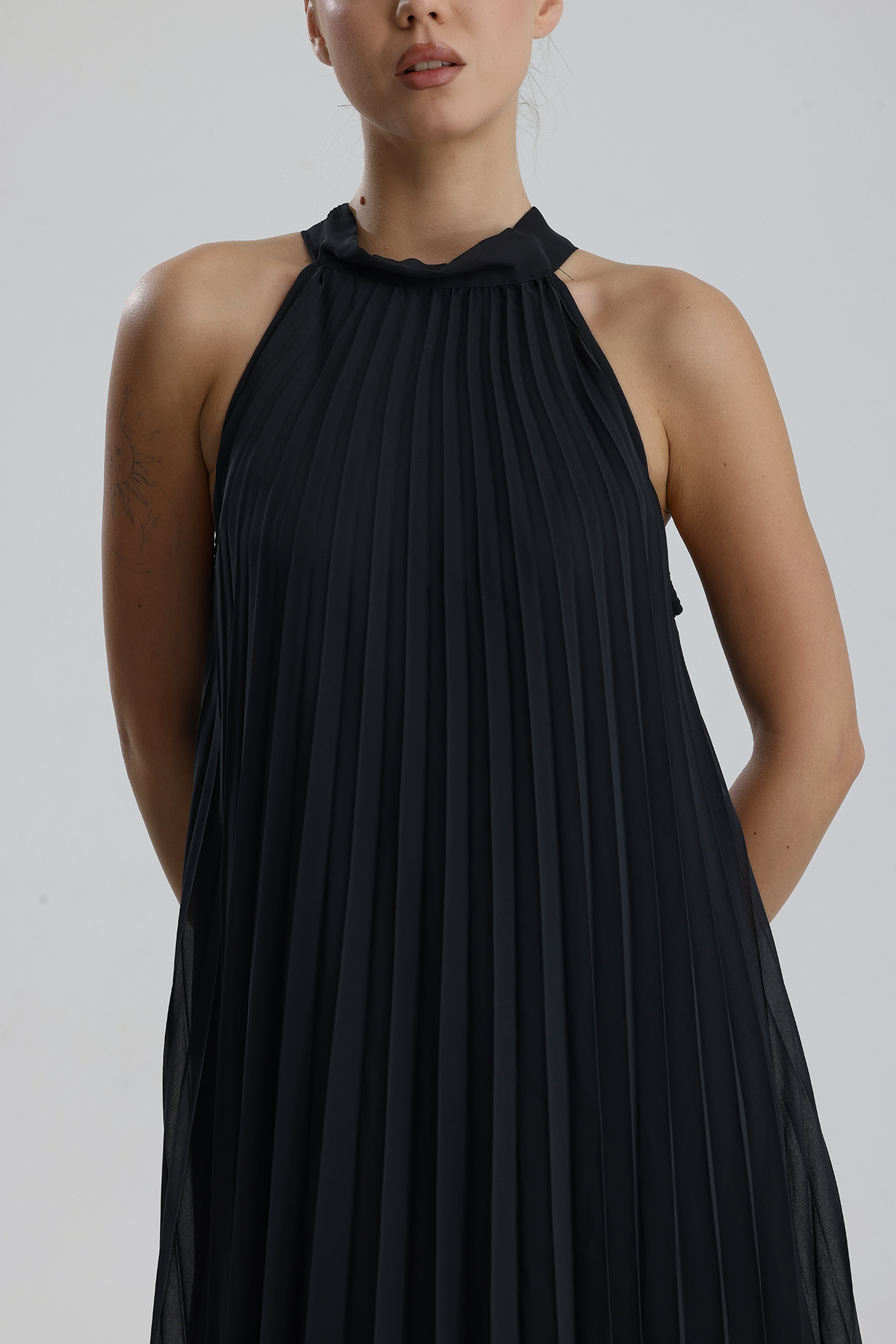 Sense Siyah Yarim Kol Parcali Pike Celik Elbise | Elb12968