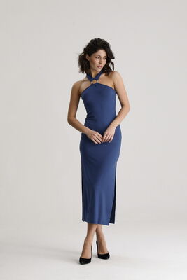 Ürün Detay : Viskon Elastan Halka Detaylı Halter Yaka Elbise | ELB36706