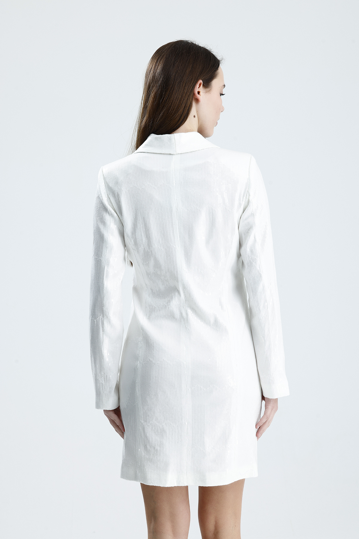 Sense Beyaz Astarlı Önü Metal Düğmeli Pul Payet Abiye kruvaze Ceket Elbise | ELB36496