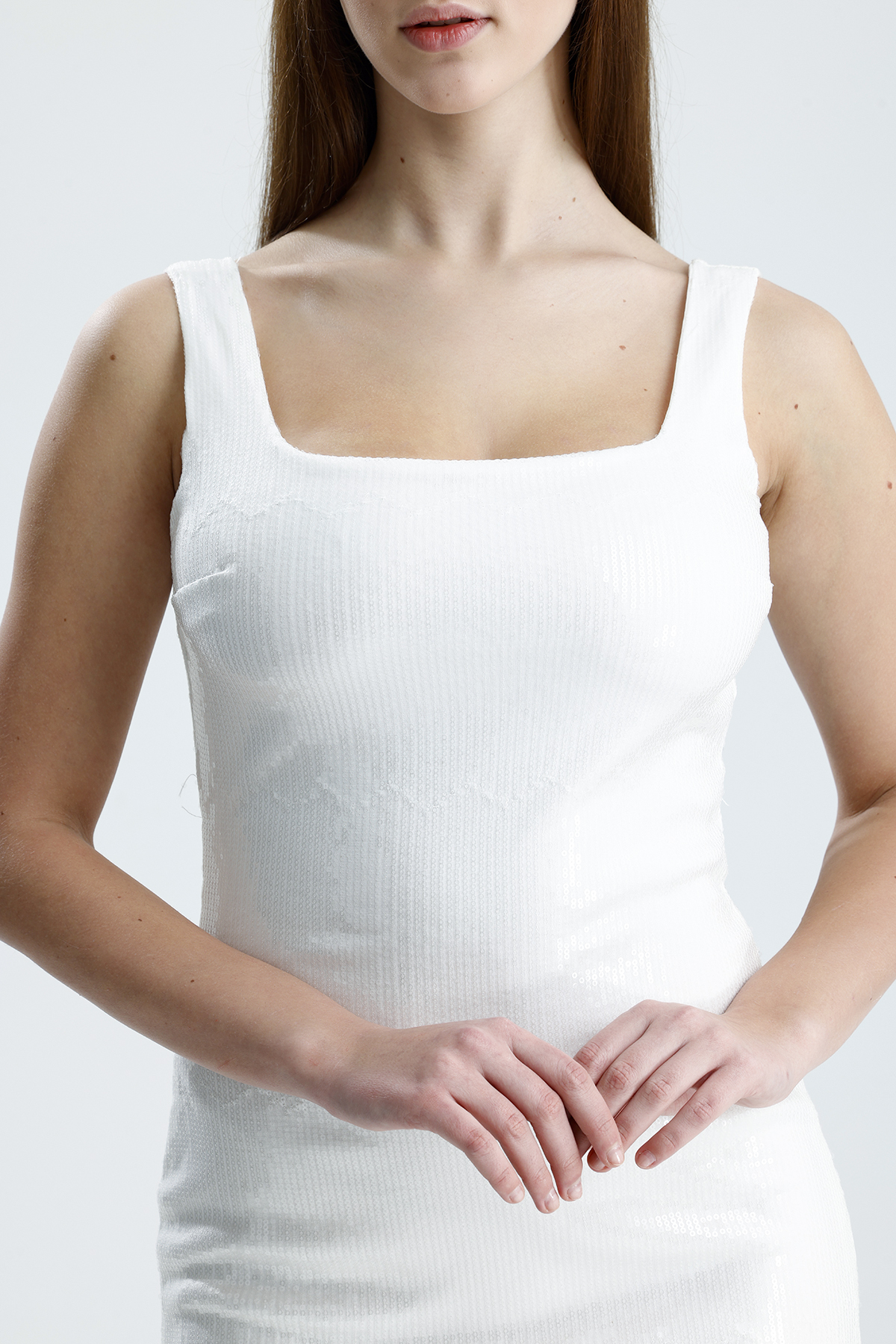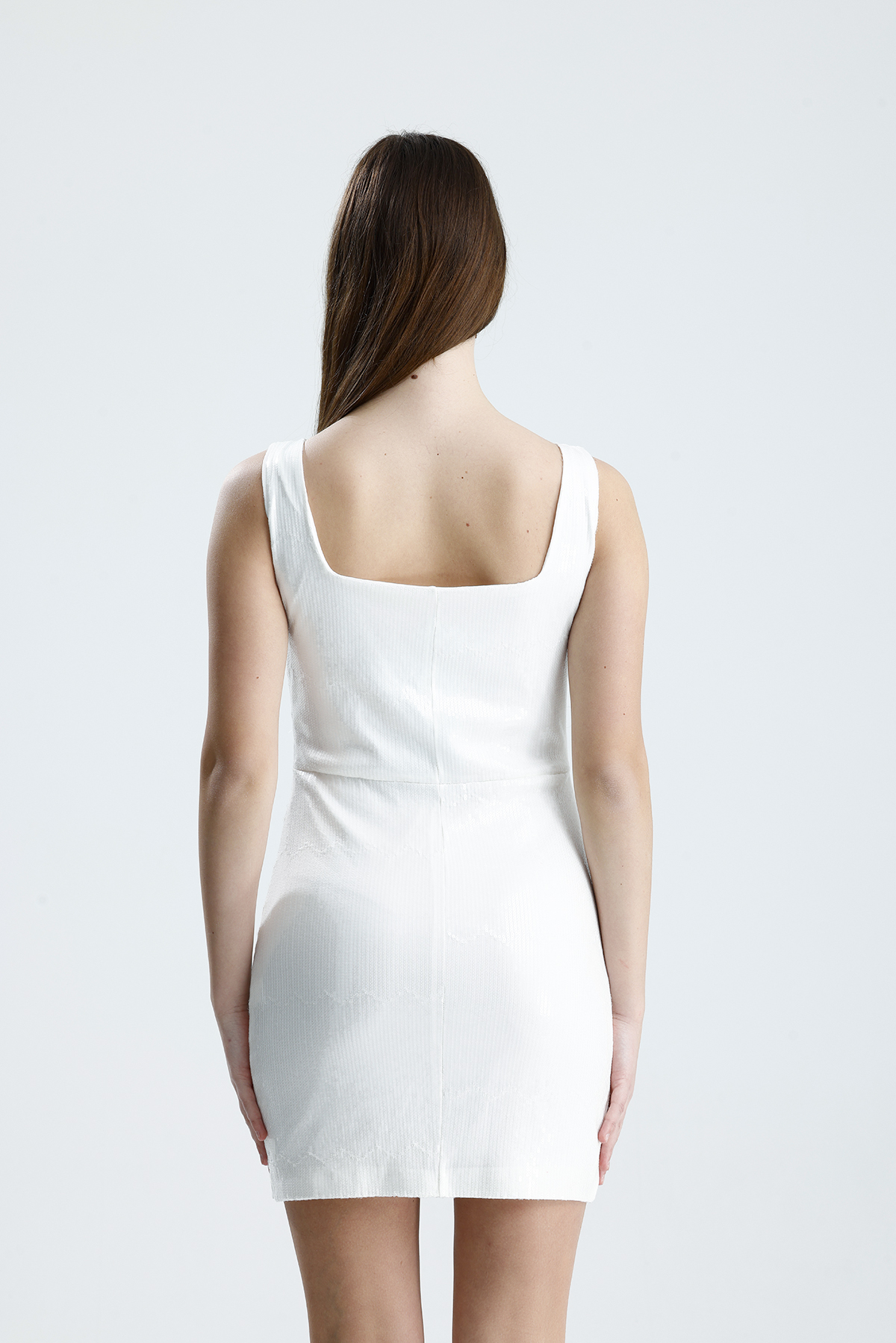 Sense Beyaz Payetli Astarlı Mini Gece Elbisesi | ELB36458