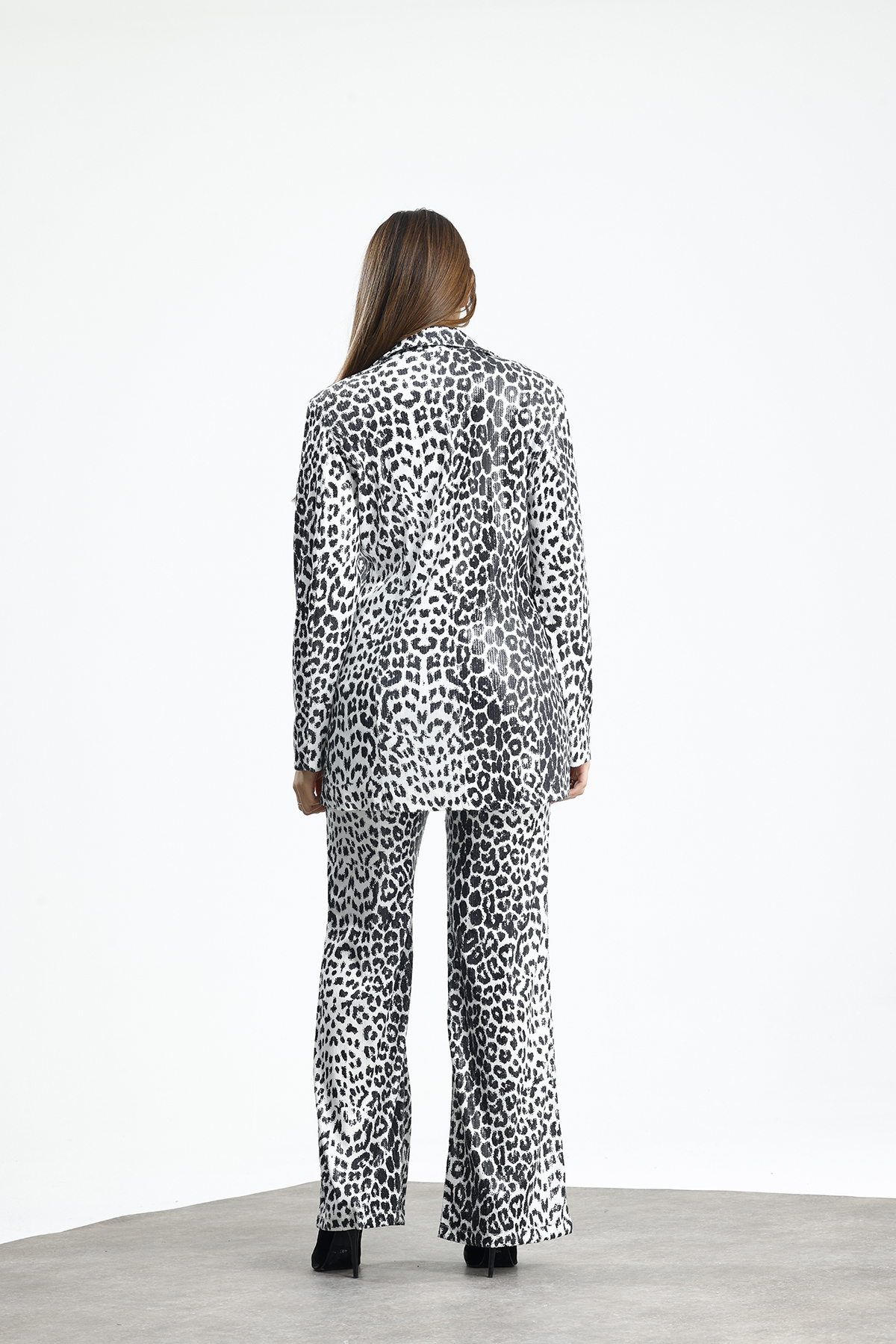 Sense Beyaz Siyah Leopar İci Astarlı Desenli Abiye Pul payet Ceket | CKT34264
