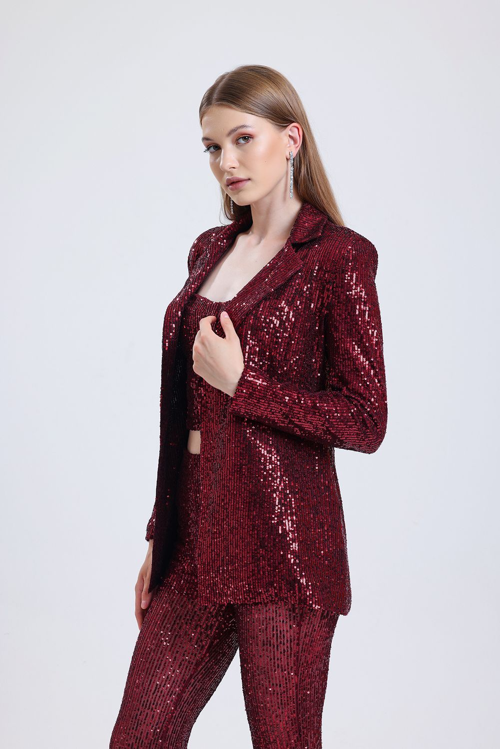 Sense Bordo Astarlı Payetli Abiye Ceket