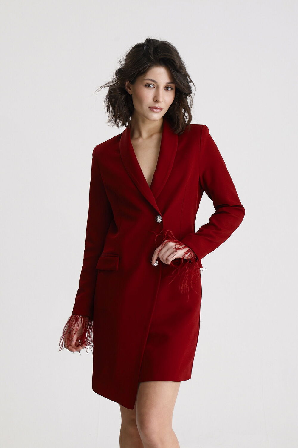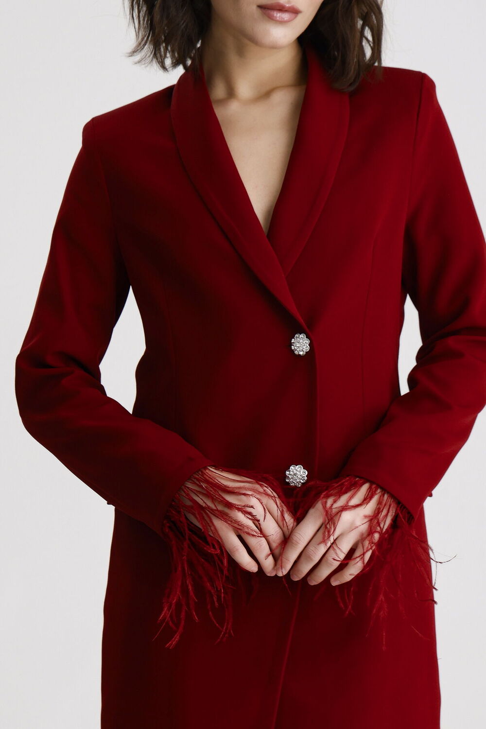 Sense Bordo Astarlı Sırtı Fermuar Detaylı  Kruvaze Ceket | Ckt35223