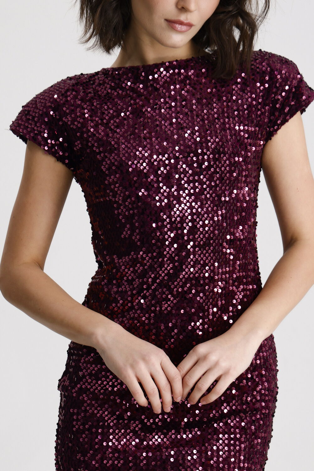 Sense Bordo Astarlı Vatkalı Mini Payet Elbise | ELB36664