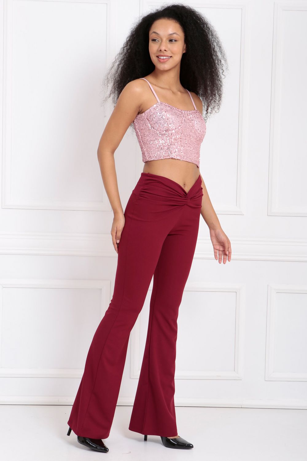 Sense Bordo İspanyol Paça Beli Burgulu Pantolon | PNT33404