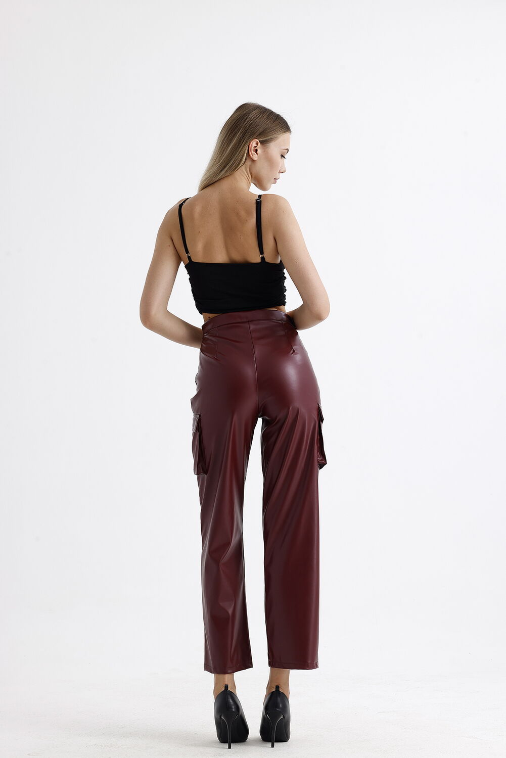 Sense Bordo Kargo Cepli Suni Deri Pantolon | PNT35246