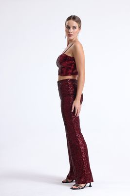 Sense Bordo Beli Lastikli Payet Abiye Pantolon | Pnt35233