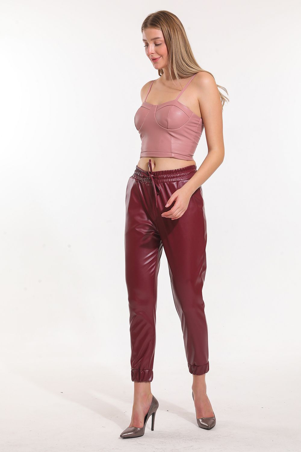 Sense Bordo Bel Ve Paça Lastikli Deri Pantolon PNT33140