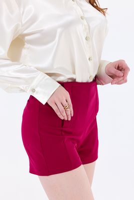 Sense Bordo Sense | Süs Cepli Atlas Hafif Esnek Krep Sort | Şrt14056Yn