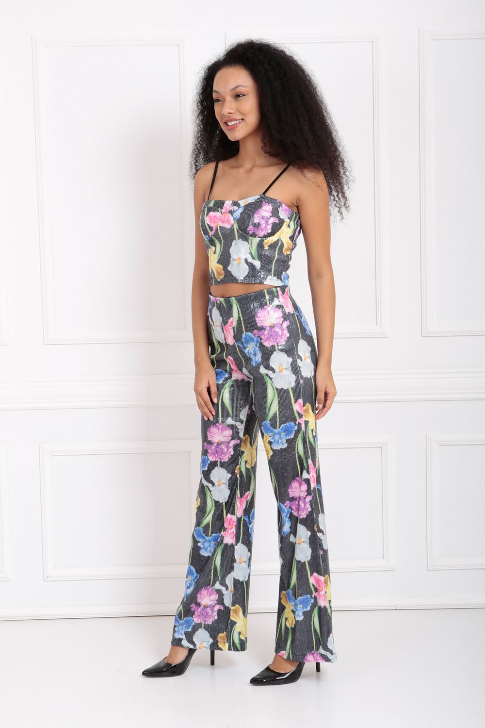 Sense Çiçekli Sense Geniş Paçalı Payet Pantolon | Pnt32440