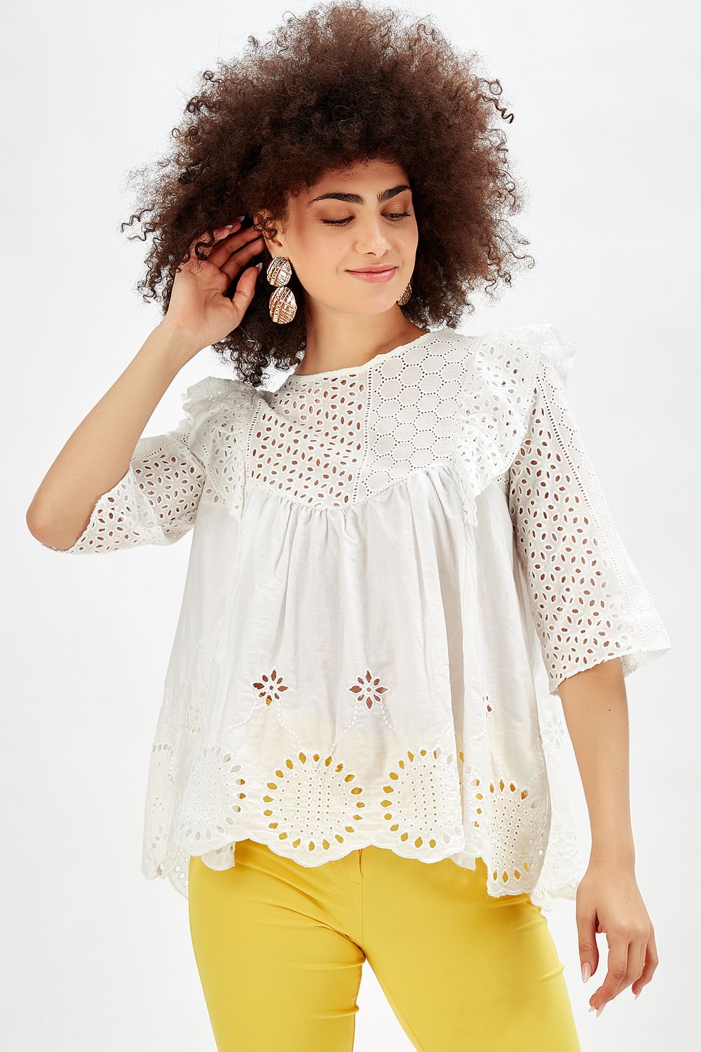 Sense Ekru Nakışlı Güpür Abiye Bluz | SENSE