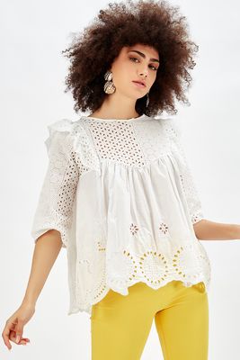Sense Ekru Nakışlı Güpür Abiye Bluz