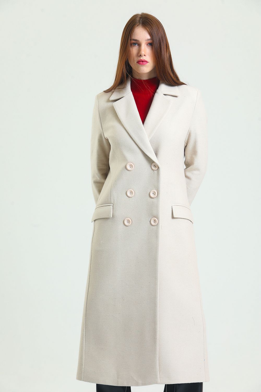 Sense Ekru Astarlı Desenli Uzun Kaban | Kbn34176