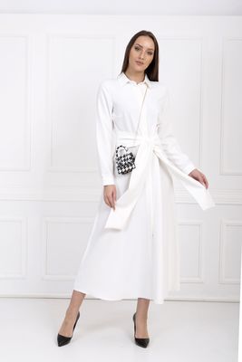Ekru Beli Kuşaklı Düğmeli Jesika Uzun Elbise | Elb33350 | Sense