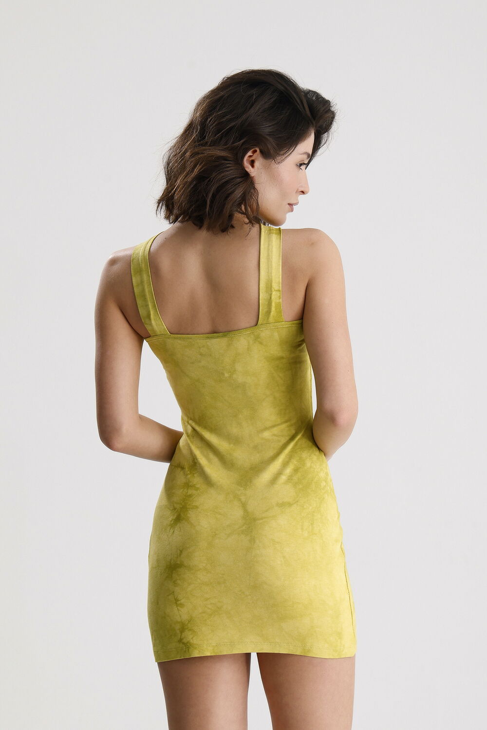 Sense FISTIK YEŞİLİ BATİK Viskon Elastan Halka Detaylı Halter Yaka Mini Elbise | ELB36662