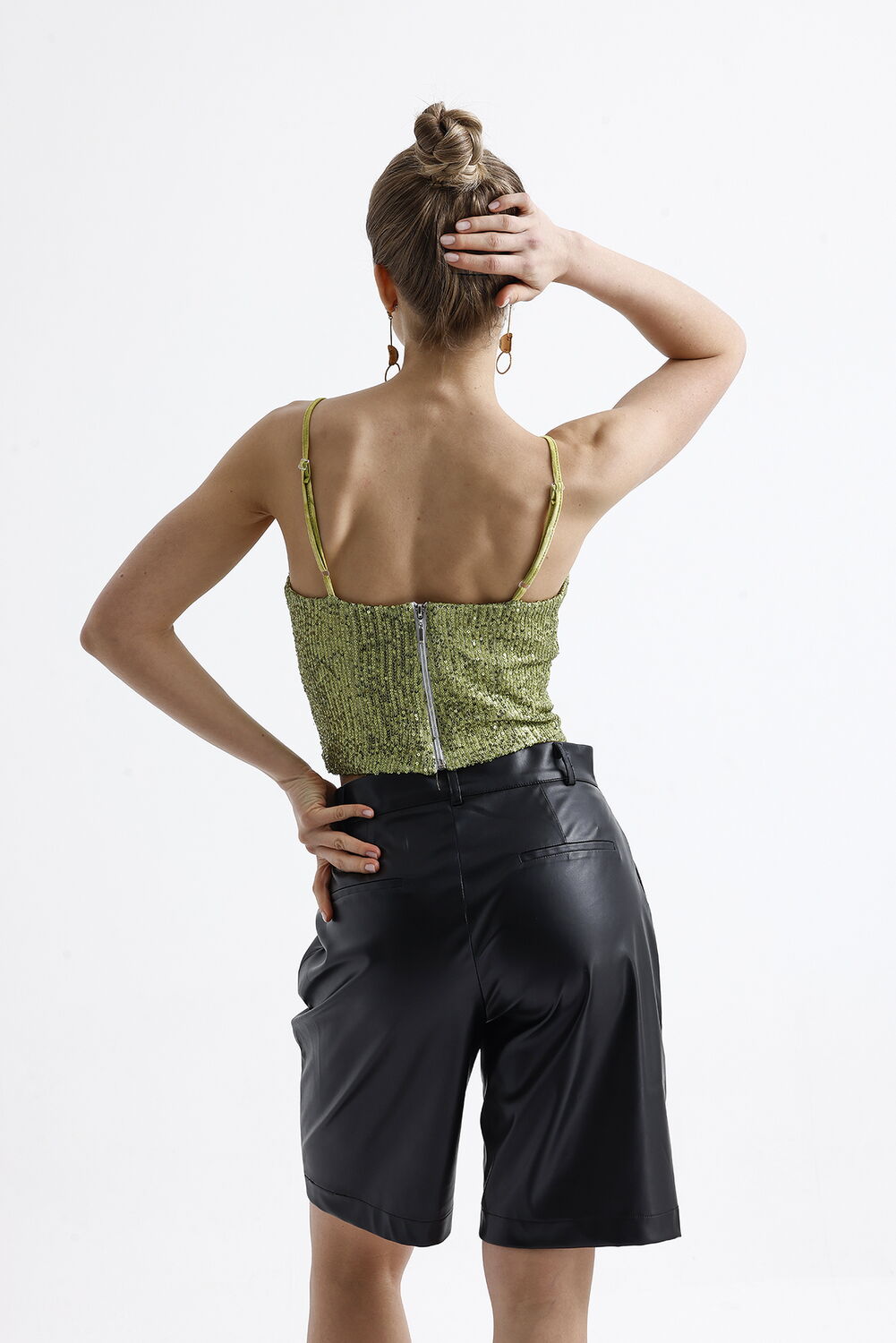 Sense Fıstık Yeşili Sense Gloplu Arkası Fermuarlı Payet Bustiyer BST33154