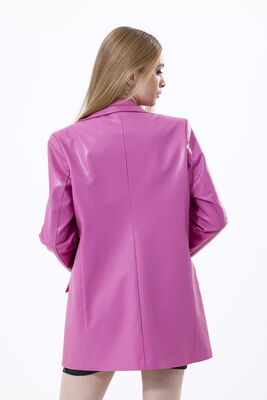 Sense Fuşya Cep Kapaklı Suni Deri Ceket | CKT33552